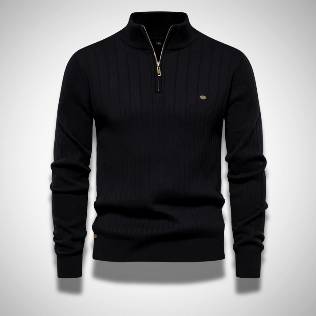Cassiel – Herrenpullover mit Reißverschluss und Plissee-Detail