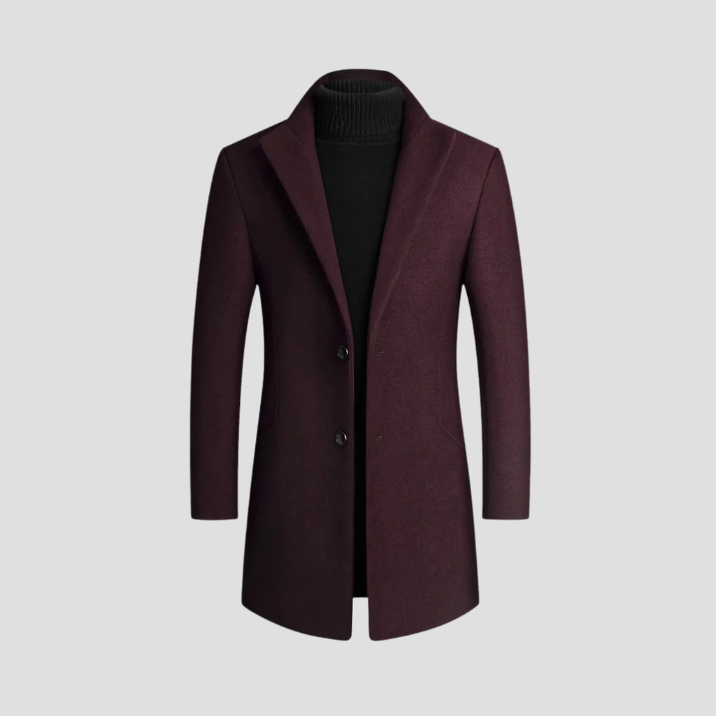 Der klassische Herrenmantel Rigobert ist ein maßgeschneiderter Mantel, der für raffinierte Eleganz im Herbst und Winter entworfen wurde. Mit seinem strukturierten Revers, der klaren Silhouette und dem markanten Knopfverschluss bietet er einen zeitlosen Look, der sowohl für formelle Anlässe als auch für gehobene Alltagskleidung geeignet ist.